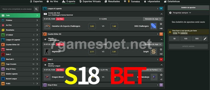 A aposta S18 Bet oferece aos jogadores a experiência mais conveniente de apostas em eSports!